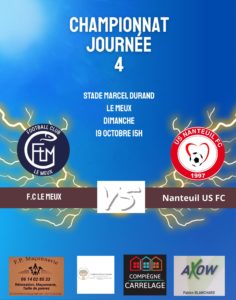 Le FC Le Meux reçoit l'US Nanteuil FC dimanche 19 octobre à 15 heures, stade Marcel Durand au Meux.