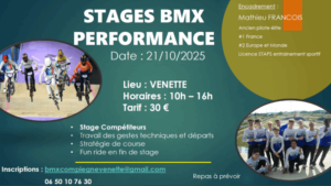 Le BMX Compiègne-Venette organise un stage compétiteurs mardi 21 octobre de 10 heures à 16 heures, piste de BMX Gilles-Bera à Venette