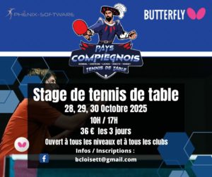Le Pays compiégnois TT organise un stage de tennis de table du mardi 28 au jeudi 30 octobre, de 10 heures à 17 heures, gymnase Ferdinand-Bac à Compiègne