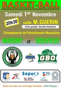 L'ASCC Margny basket reçoit Gouvieux basket-ball samedi 1er novembre à 20h30, salle Marcel-Guérin à Margny-lès-Compiègne