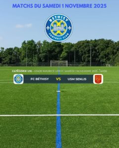 Le FC Béthisy reçoit l'USM Senlis samedi 1er novembre à 14h30, stade Maurice Leroy à Béthisy-Saint-Pierre