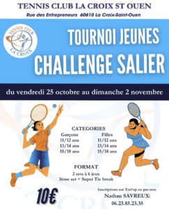 Le Tennis club La Croix organise le challenge Salier du samedi 25 octobre au dimanche 2 novembre, rue des entrepreneurs à La Croix Saint-Ouen
