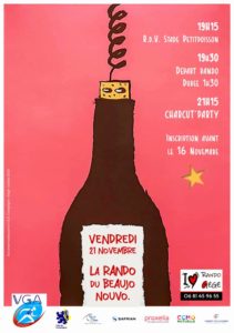 La VGA Compiègne organise la rando du beaujo nouvo vendredi 21 novembre. Rendez-vous à 19h15 au Stade Paul-Petitpoisson