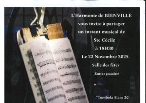 Instant musical à Bienville samedi 22 novembre à 18h30, à la salle des fêtes de Bienville.