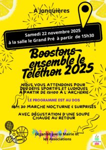 Boostons ensemble le Téléthon samedi 22 novembre à partir de 15h30, salle du grand pré à Jonquières.