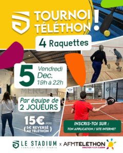 Voir les détails »Tournoi 4 raquettes spécial Téléthon au Stadium