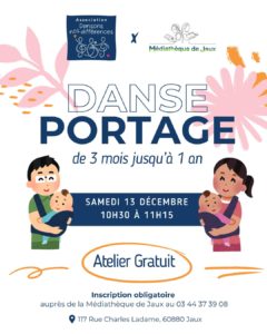 Dansons nos différences organise un cours de danse-portage de 3 mois à un an, samedi 13 décembre de 10h30 à 11h15, à la médiathèque de Jaux, 117 rue Charles Ladame.