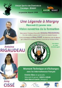 L'ASCC Margny basket vous propose d'échanger avec Antoine Rigaudeau et Amy Cissé mercredi 21 janvier, de 16h45 à 19h30, salle Marcel Guérin à Margnyl-lès-Compiègne