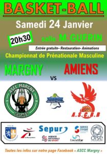 L' ASCC Margny basket reçoit Amiens SCBB samedi 24 janvier à 20h30, salle Marcel Guérin à Margny-lès-Compiègne