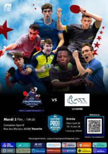 Le Pays compiégnois TT reçoit Le Havre TT mardi 3 février à 19h30, maison des sports de Venette.