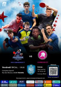 Le Pays compiégnois TT reçoit Courbevoie STT vendredi 19 décembre à 19h30, maison des sports de Venette.